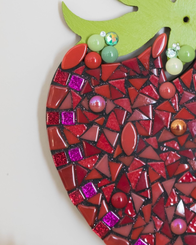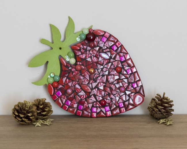 Chaque cabochon, chaque éclat de verre et chaque émaux de Briare s’assemblent pour donner vie à une fraise éclatante de lumière. Comme un talisman gourmand, elle capte les regards et diffuse une énergie joyeuse et pétillante.