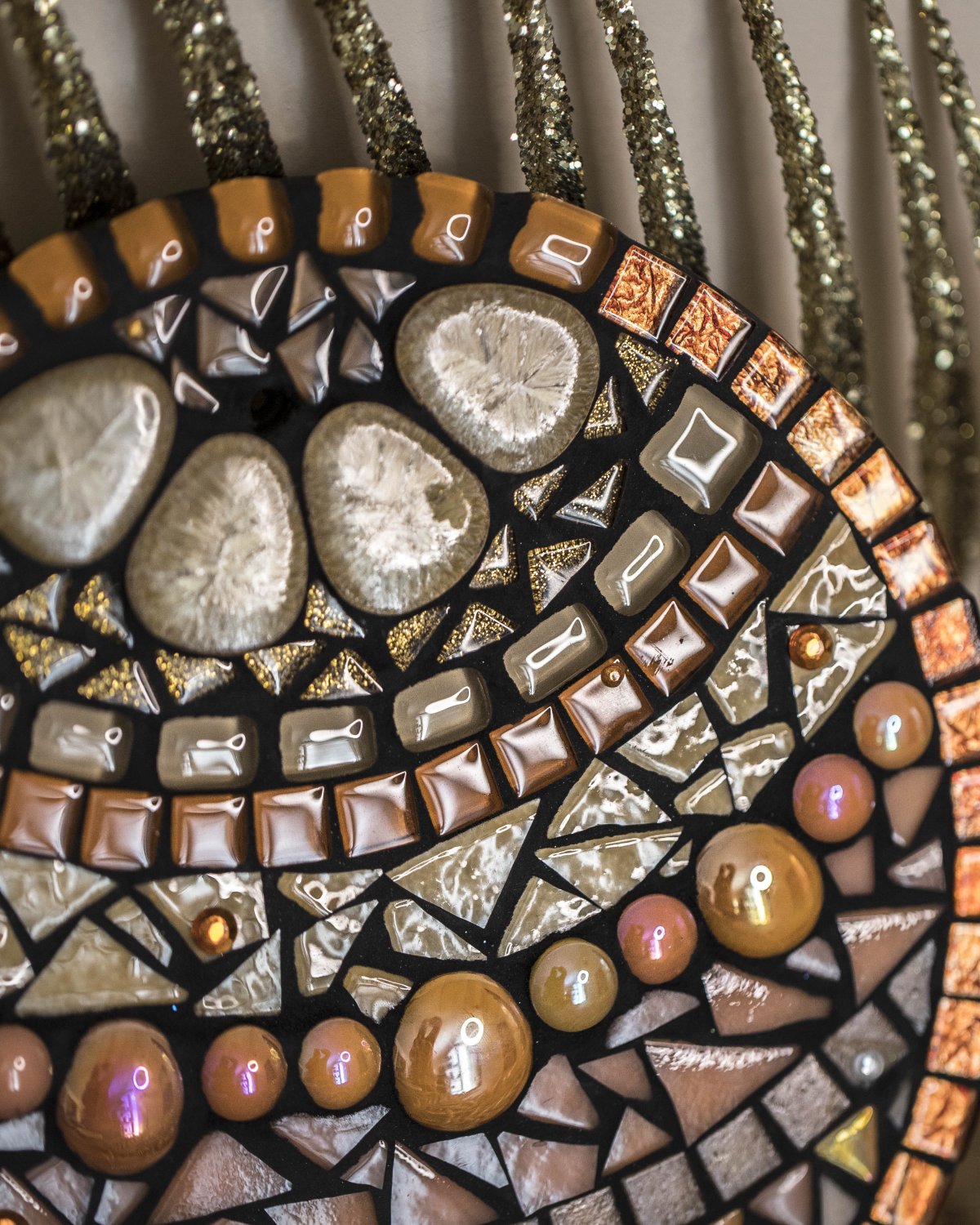 Matériaux : Céramique, émaux de Briare, pâte de verre, caillou de verre, strass, cabochon