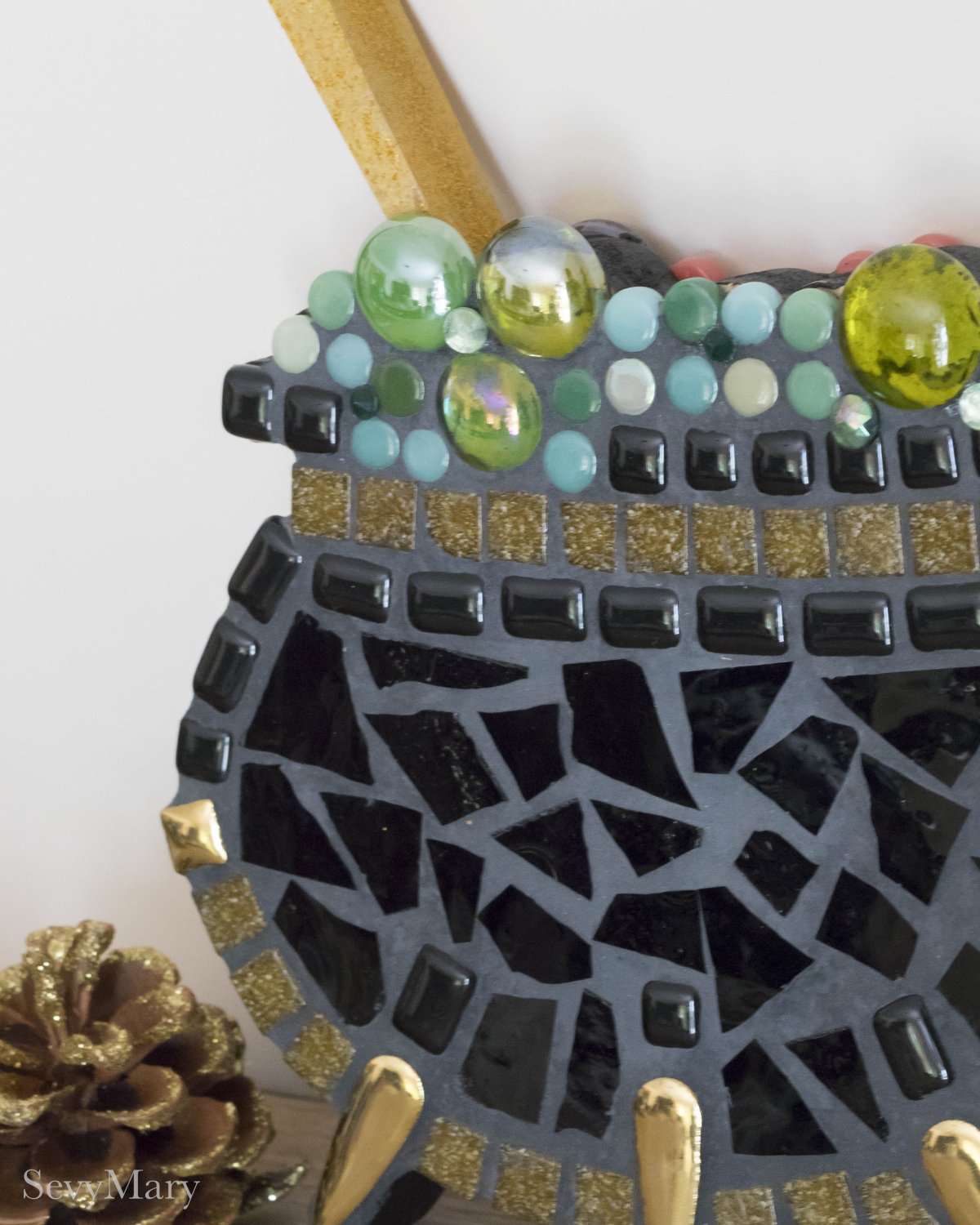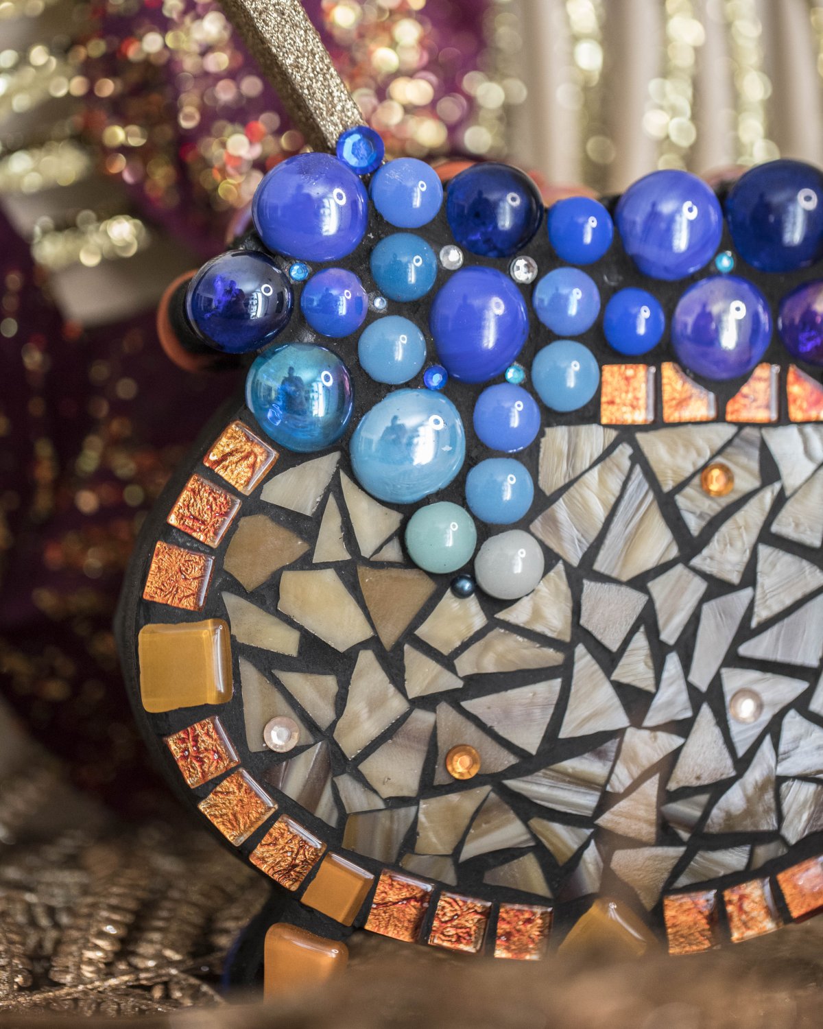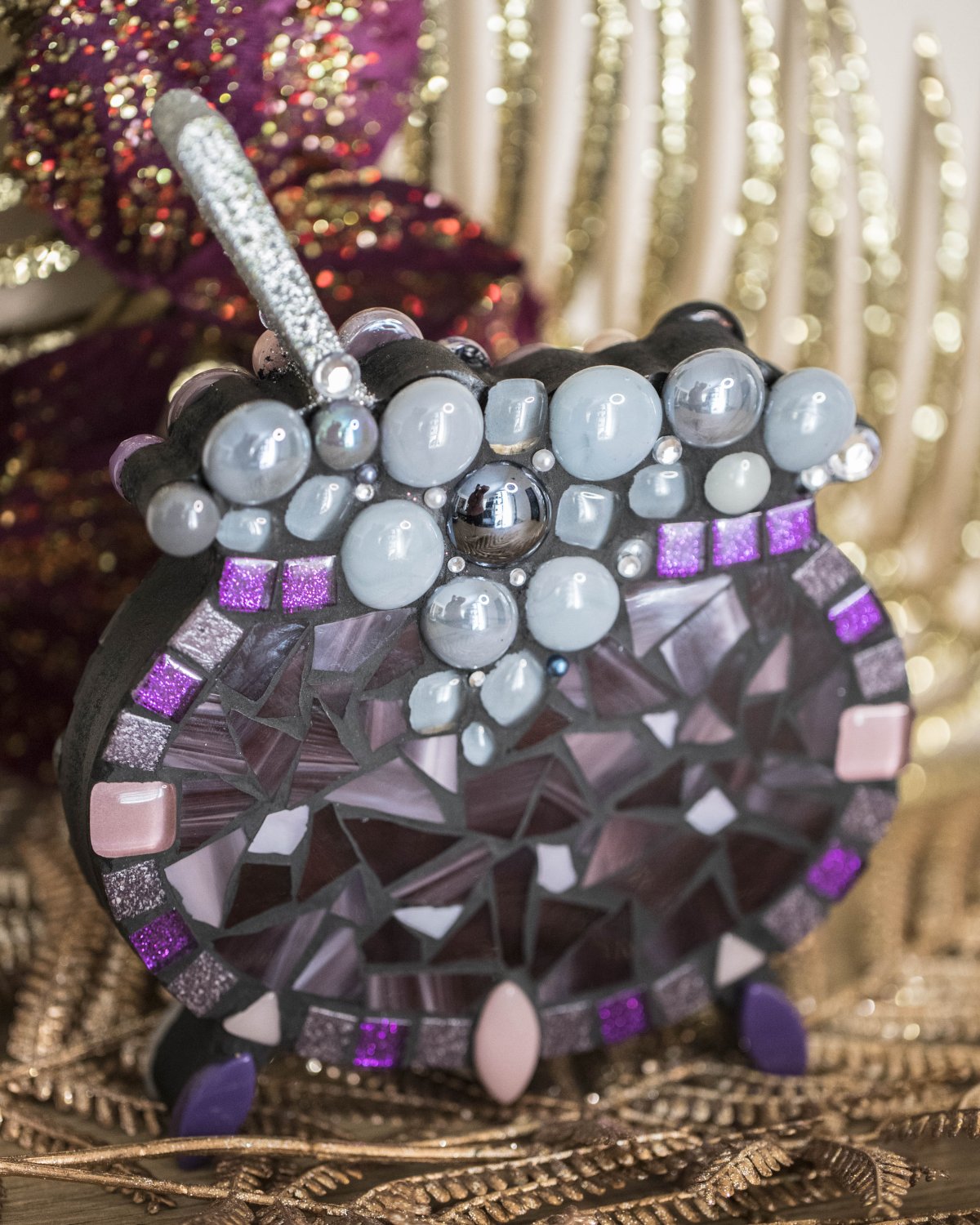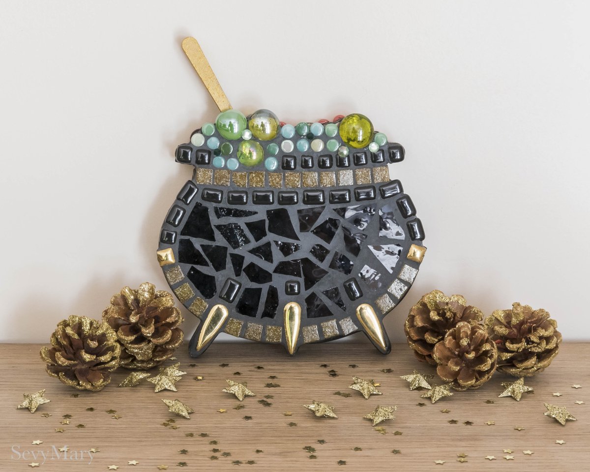 Petits chaudrons doubles, enchâssés de mosaïque recto/verso, nés pour contenir l’insaisissable : un sort, un rêve, un feu secret. Chaque pièce est unique, composée de céramiques, verres, émaux de Briare, cabochons et autres fragments d’univers. Ils évoquent l’alchimie du cœur, la cuisine des émotions, les potions invisibles qui rendent la vie plus étrange et plus belle.